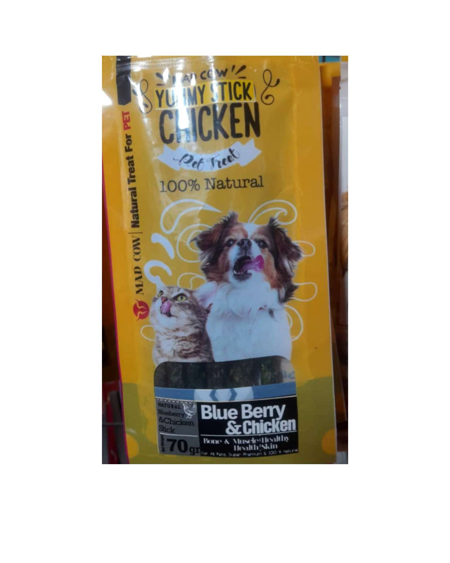 تشویقی سگ و گربه مدکو (Mad Cow)مدل مدادی نرم طعم مرغ و بلوبری-70 گرم