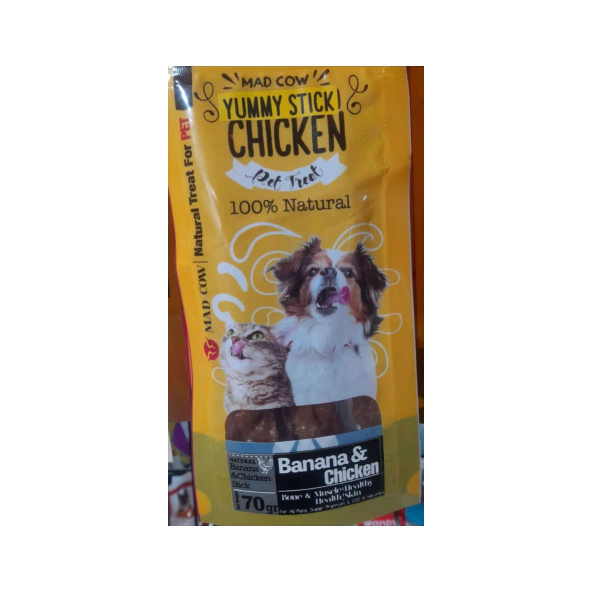 تشویقی سگ و گربه مدکو (Mad Cow)مدل مدادی نرم طعم مرغ و موز-70 گرم